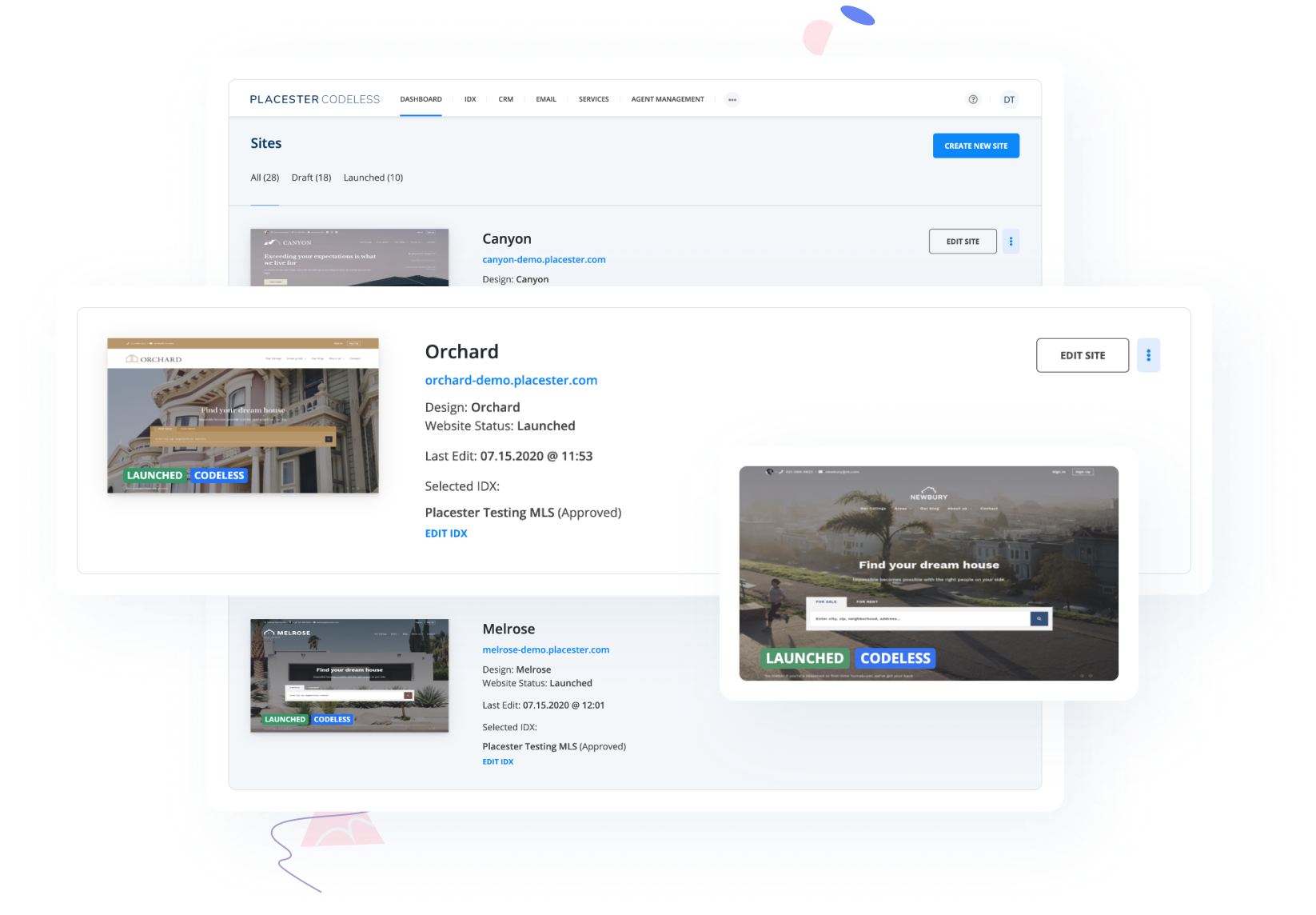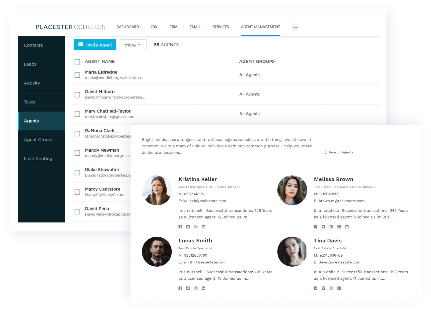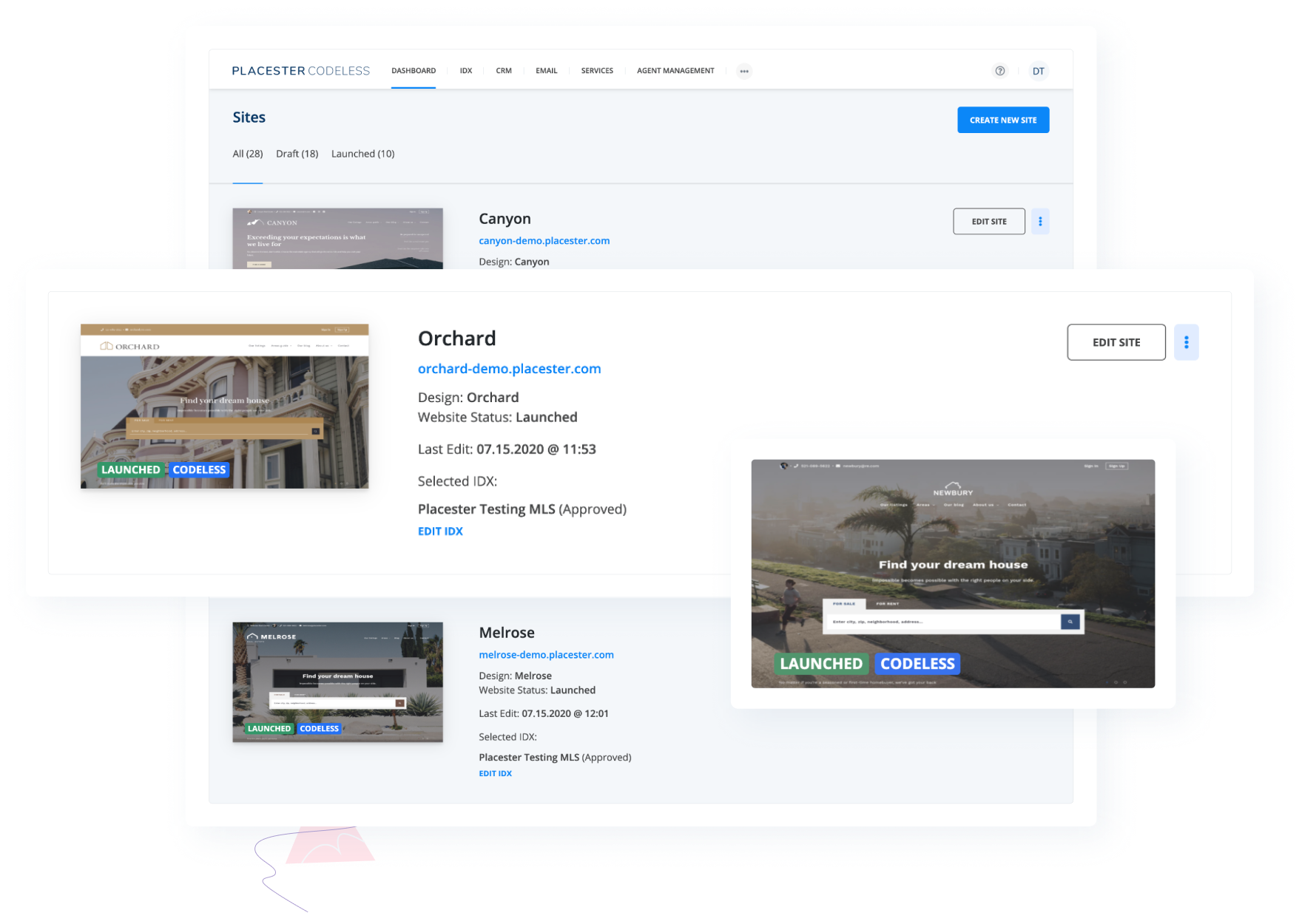 With Placester, you don’t need to be technical to turn ideas into reality. Build, launch, and manage multiple websites with ease. Create content on the fly, onboard new agents, manage the agent roster, and get stuff done without a developer.