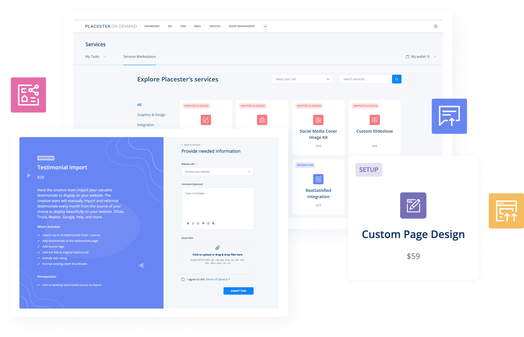 Placester's Services Marketplace gives you a powerful resource to offload website, design, and creative tasks to get more done—for you and your agents.