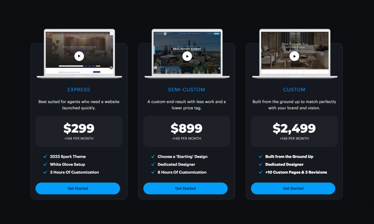 The point of Agent Fire pricing is that any website customization requires the work of the IT team because it is an engineer-coded website. Each package includes a certain number of IT hours (starting from 3hrs in the Express plan to 8hrs in Semi-custom), but if you need more complicated enhancements or do them regularly, it takes more time to complete the work. It also means that you will end up with a larger amount to pay. That’s why you can easily rack up a bill of a few thousand dollars a month as pay for packages of working hours of the team of engineers.