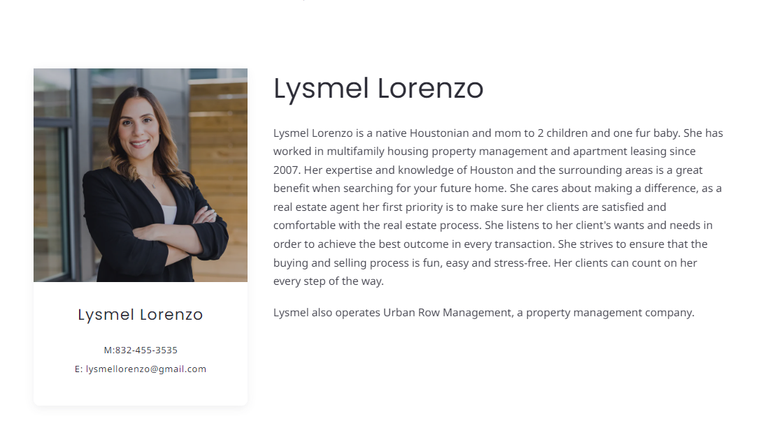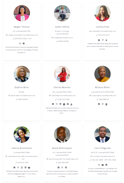 Apart from the team bio, it is important to introduce every agent in a team individually as well. You can have a grid with agents’ pictures and their contact information in the bio section or have every agent’s short bio written just below the team bio, with their picture beside the text.