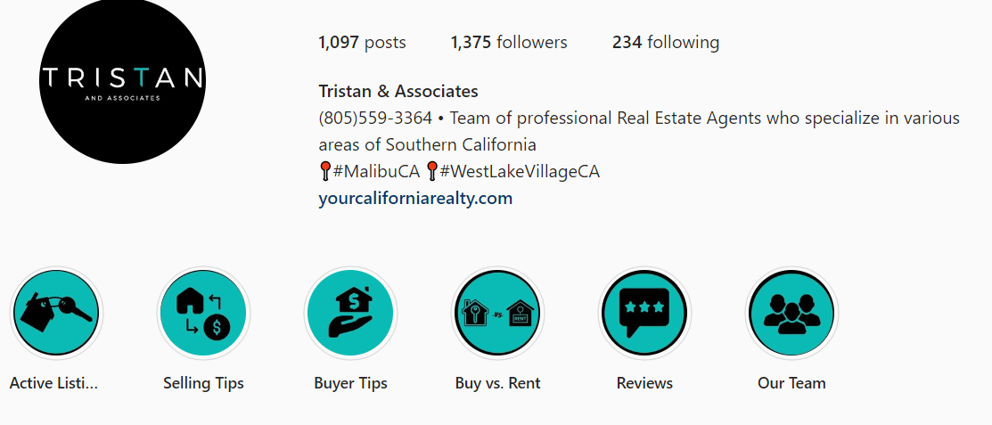 If you’d like to tell your Instagram visitors more about yourself - you can write a separate post (up to 2,200 characters) and pin it to your profile so it will always be the first post displayed on your feed. Example: Tristan & Associates