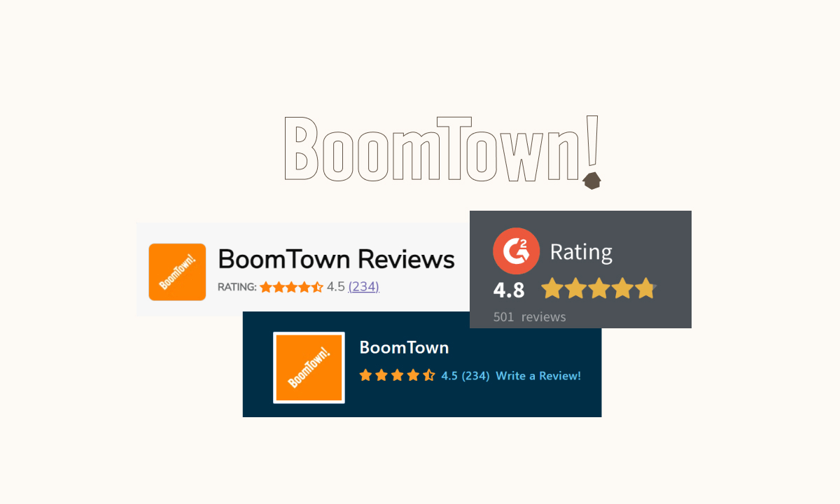 BoomTown has reviews on different platforms (G2, Capterra, Softwareadvice), but not on Google, however they display a Google partner badge on their website (in the footer section)
