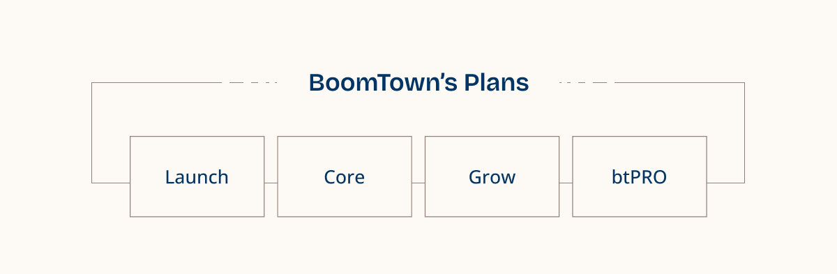 Recently, the names of packages changed as follows: Launch, Core, Grow, and btPRO. The first two packers are still dedicated to individuals (Launch - up to 2 people, and core up to 5), with the introduction of btPRO, which replaced the Advance package. The btPRO is a mix of kvCORE and BoomTown technology for a team-centric solution that allows top producers to operate their business at the highest level.