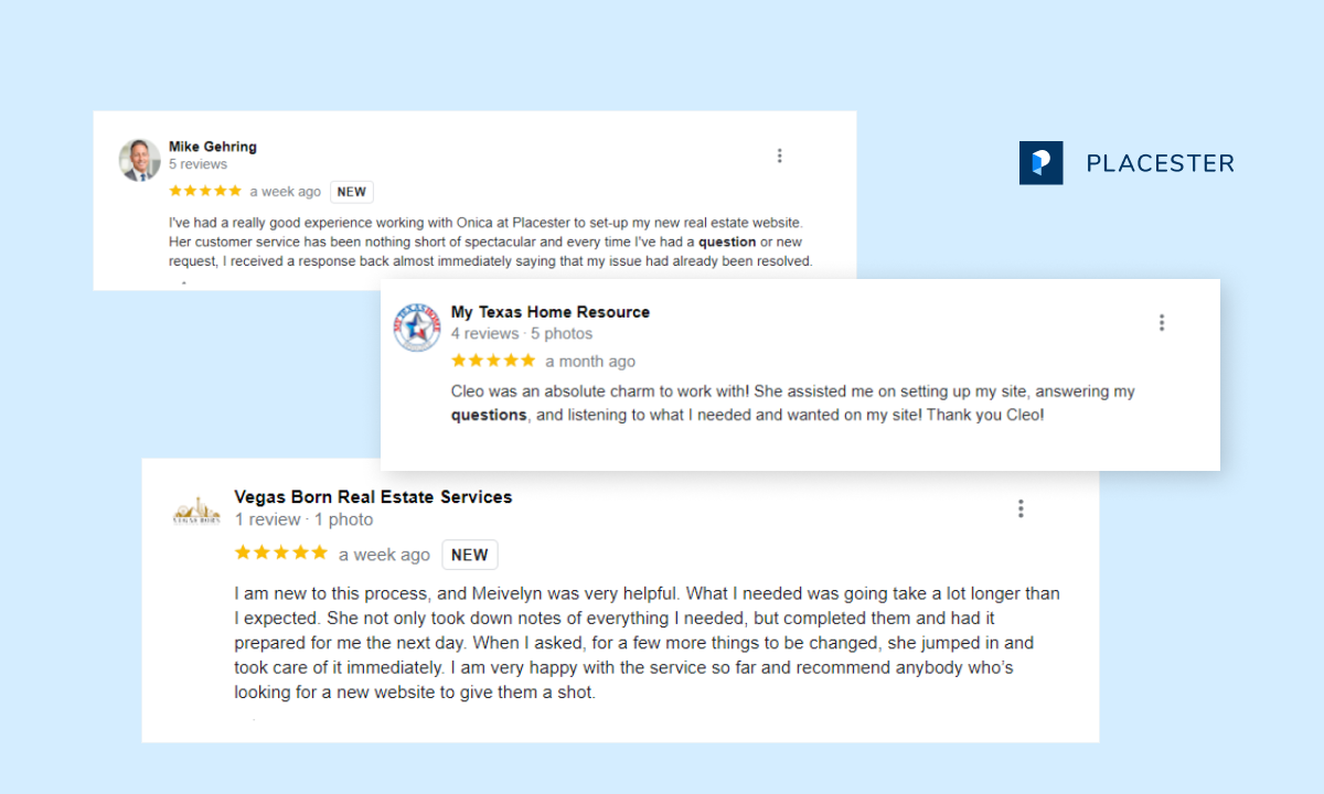 More than 100 reviewers on Google commented that the Placester team was helpful and “got all of my questions answered confidently.” According to them, responses were quick, polite, and knowledgeable.