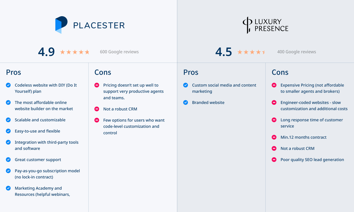Placester vs. Luxury Presence