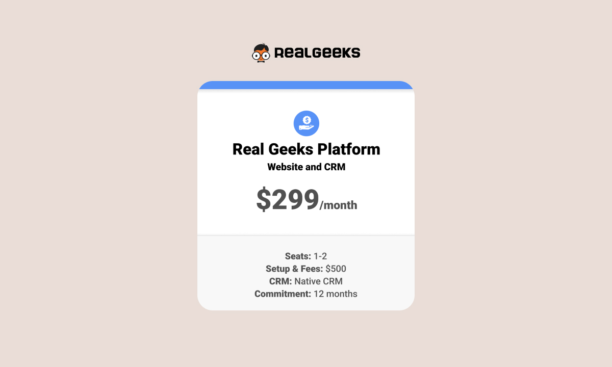 For this price, you get an IDX-enabled website with the Real Geeks CRM and access to their vast library of how-to's & strategy guides effectively using our tools. You can also add Facebook ad marketing features, which start at around 600 dollars.