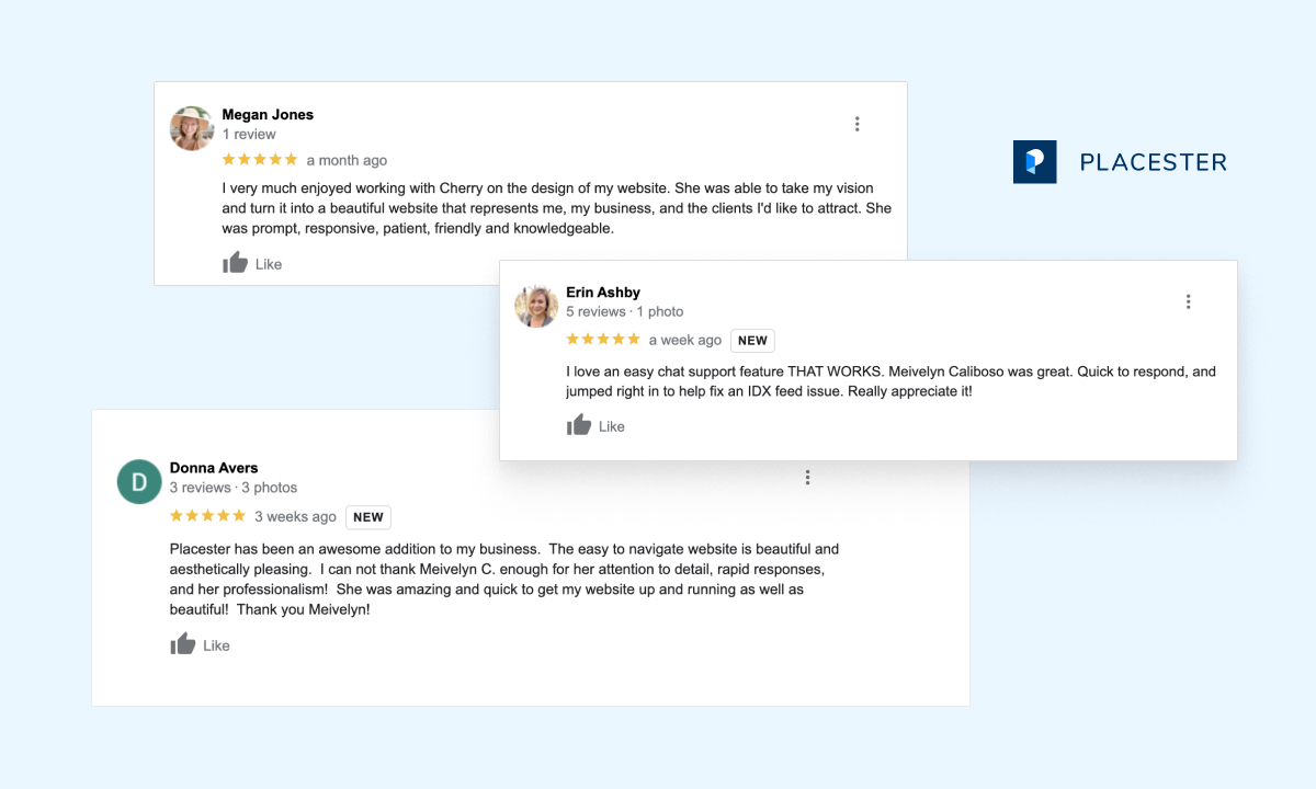 More than 70 reviewers on Google commented that the Placester team was helpful and “got all of my questions answered confidently.” According to them, responses were quick, polite, and knowledgeable.